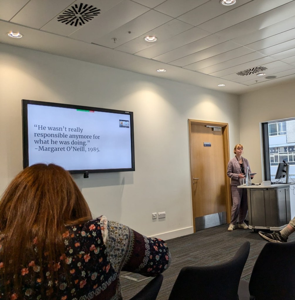 Hannah Kempel presented on her research at this year’s Irish History Students’ Association Conference at the University of Galway on 2 March 2024. Hannah’s talk was titled “Isolation, Risk, and Community: Understanding Researchers’ Responses to Irish Migrant Health after 1950”.
